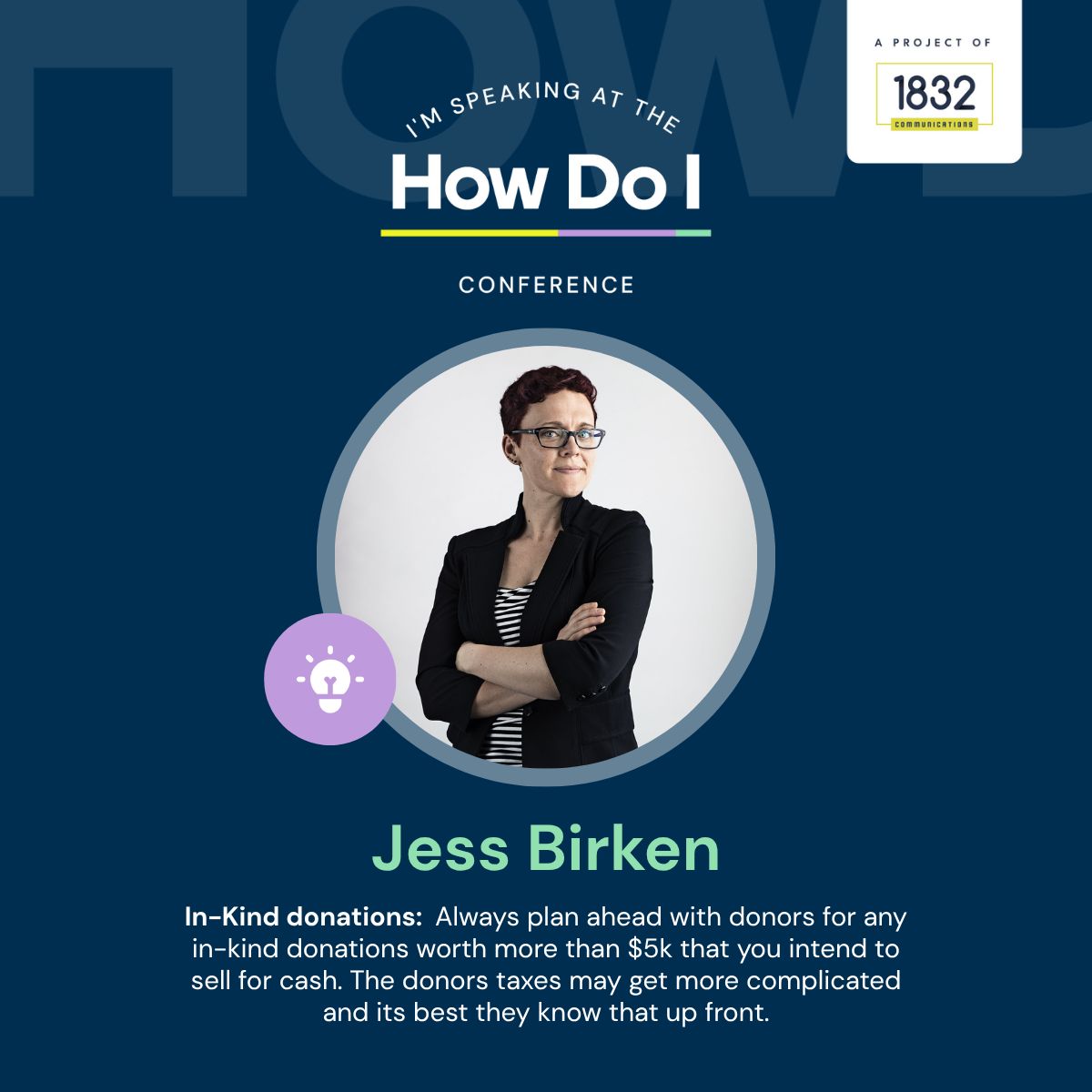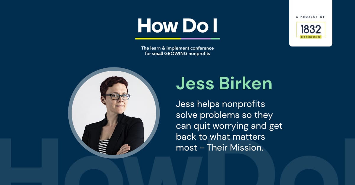 I recently announced the How Do I online conference in January- the conference for staff at GROWING nonprofits (budget below $5 million). I’m using this section to introduce you to one of the conference speakers, nonprofit lawyer Jess Birken.