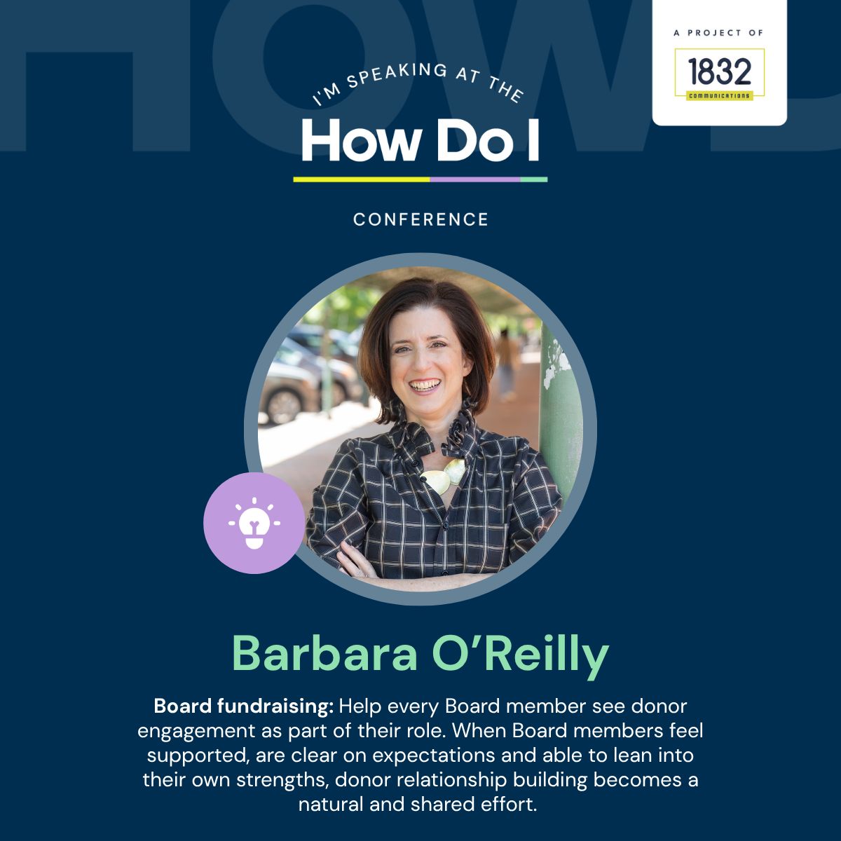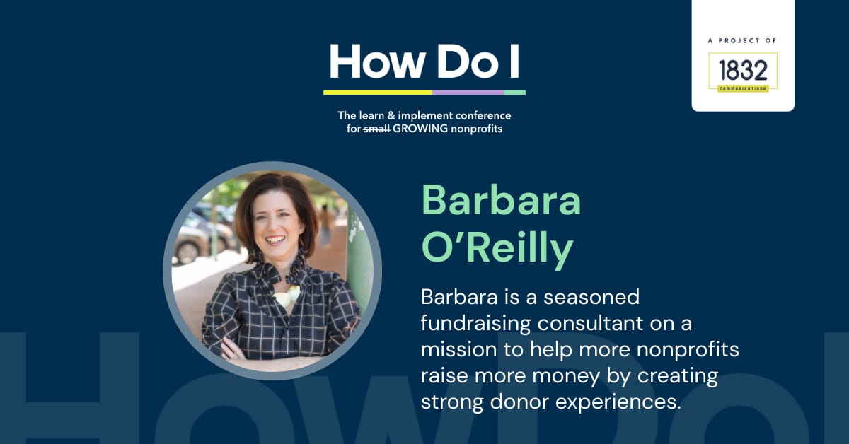 I recently announced the How Do I online conference in January- the conference for staff at GROWING nonprofits (budget below $5 million). I’m using this section to introduce you to one of the conference speakers, leading fundraising expert Barbara O’Reilly.